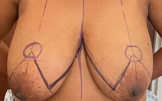 Before the procedure, Dr Abood will make specific markings around your areola and the underside of your breasts. These will act as a guide for him as he reshapes the breasts. The nipples will also usually be lifted and reduced in diameter during the procedure.